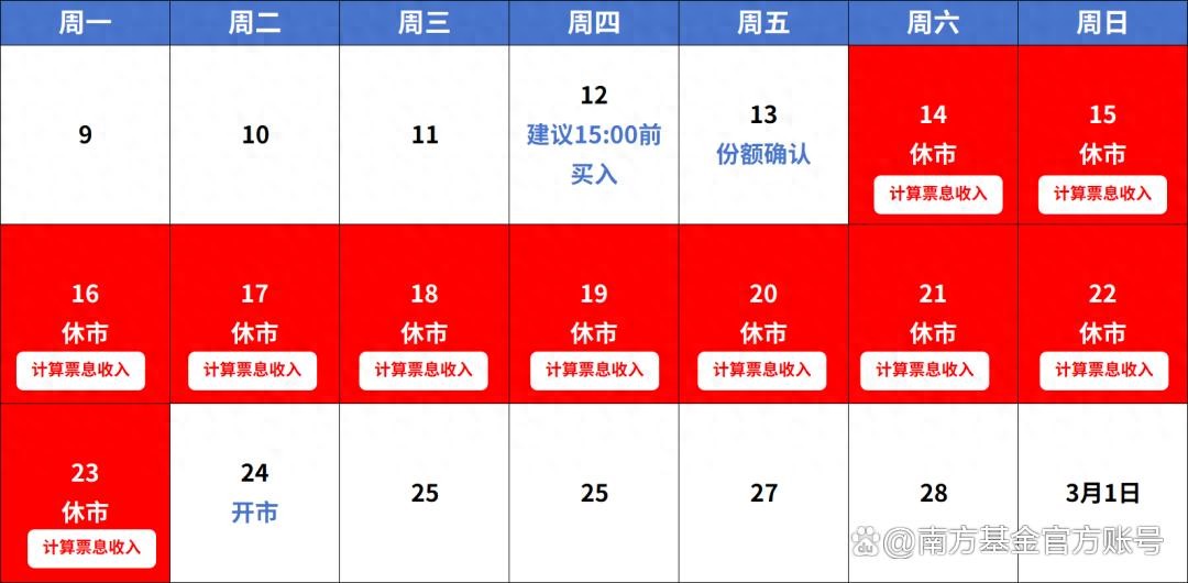 因此,如果投资者希望闲置资金能从春节假期休市第一天(2月14日,周六)起开始计算收益,考虑到2月13日(周五)为节前最后一个交易日,那么在2月12日(周四)下午3点前完成申购是较为合适的选择。提前做好资金规划,有助于更顺畅地安排假期理财。