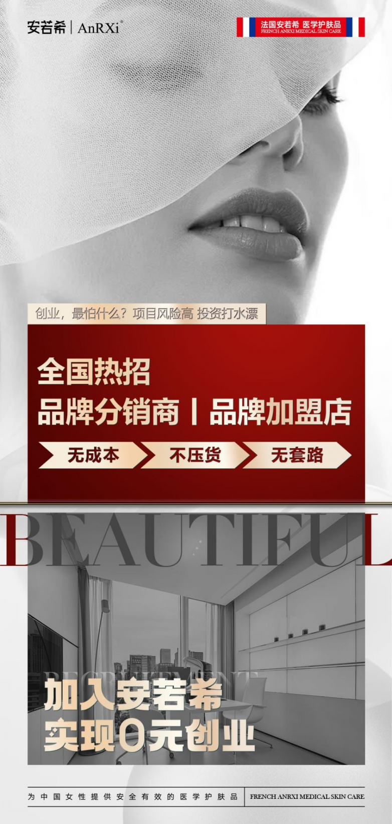 法国安若希1958年创立于巴黎,2016年正式进驻中国市场,始终聚焦院线护肤领域,针对中国女性肤质、基因特点及常见肌肤问题,开创性打造“问题肌肤治愈康复规划、亚健康肌肤疗程规划、术后肌肤修护疗程规划、肌肤细胞再生疗程规划”四大肌肤疗程体系,致力于为中国女性提供安全、有效、专业、科学的院线护肤解决方案。品牌全线产品核心原材料均为法国进口,全球甄选优质进口成分与强功效专利配方,采用特色无防腐护肤体系,温和性与有效性兼具,且不易致敏,可直接应用于医美项目术后屏障受损肌肤及各类问题肌肤。凭借硬核的产品实力与专业的服务体系,品牌入驻超13000家专业美容院、皮肤管理及医美整形机构,还斩获“国际生物级护肤产品安全奖”“中国化妆品大会年度新锐品牌”“中国美博会年度人气王” 等多项行业高含金量殊荣,拥有极高的市场知名度与消费者口碑认证。
